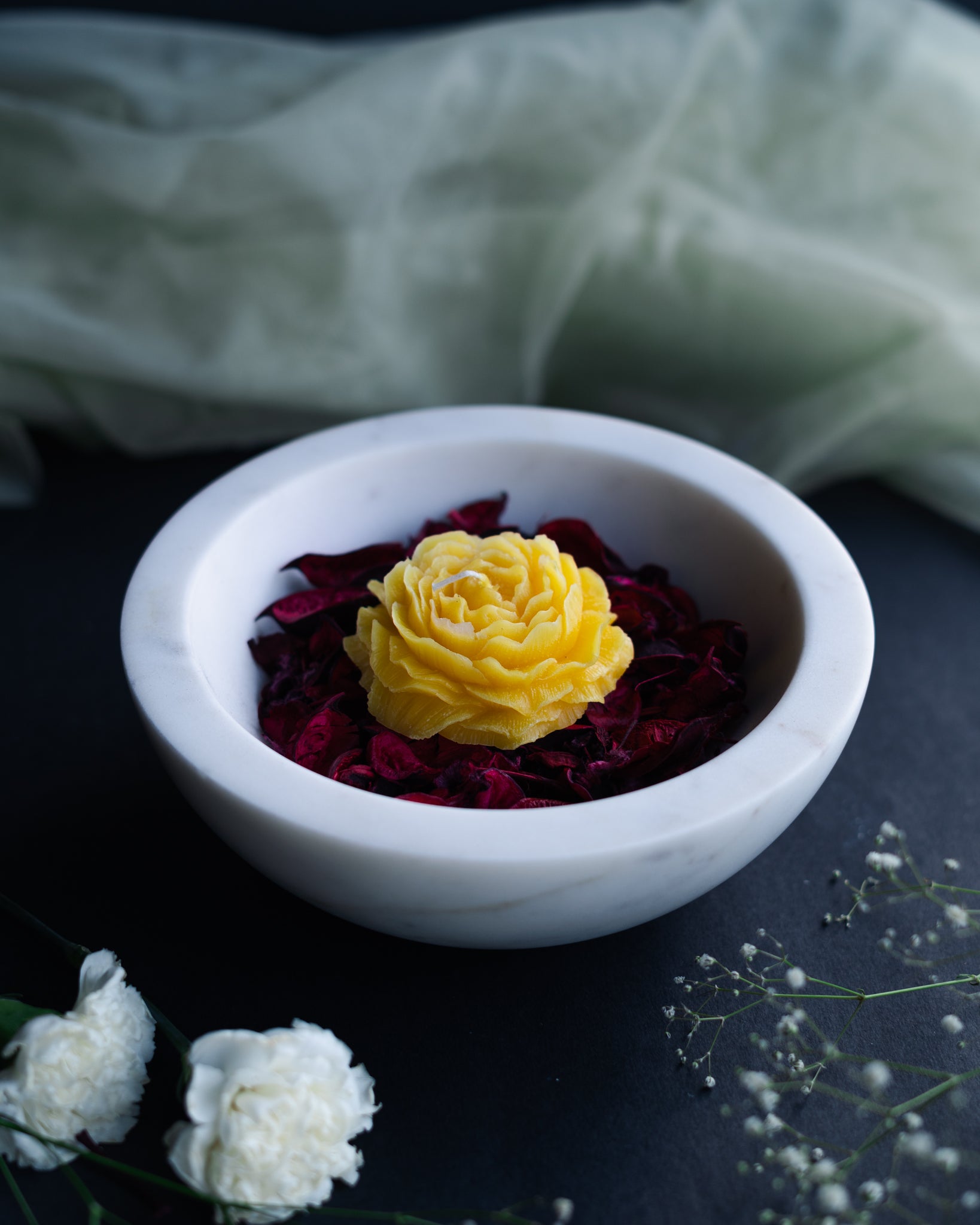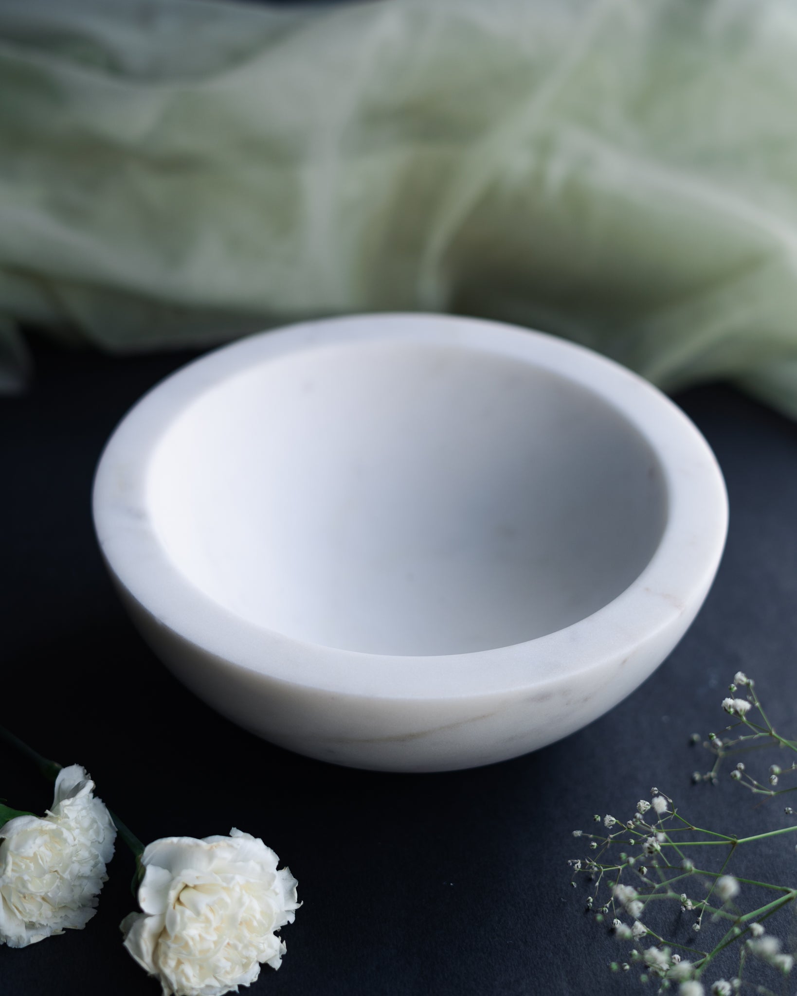Handmade white Marble bowl is a perfect accessory to hold candles. The bowl can be filled with potpourri, fresh flowers & floating candles. It help create different decor themes for all occasions.