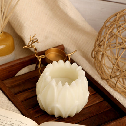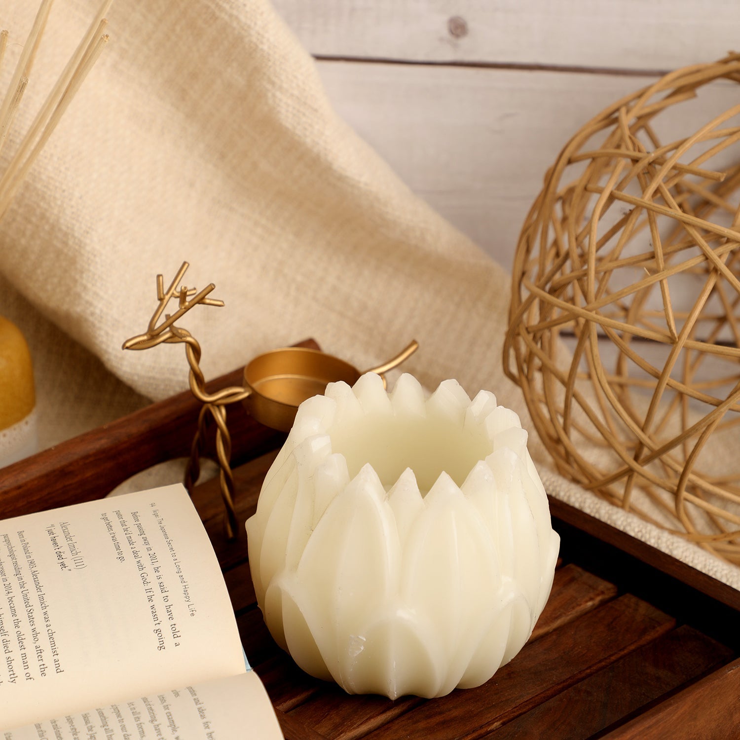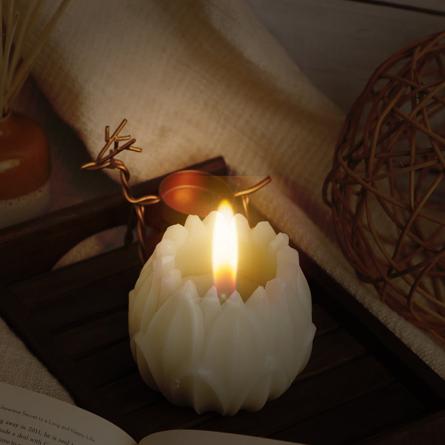Celebrate tranquility with this exquisitely designed lotus candle. Unscented and elegant, it's the best piece for a serene experience. Ideal for personal use or as a meaningful gift.