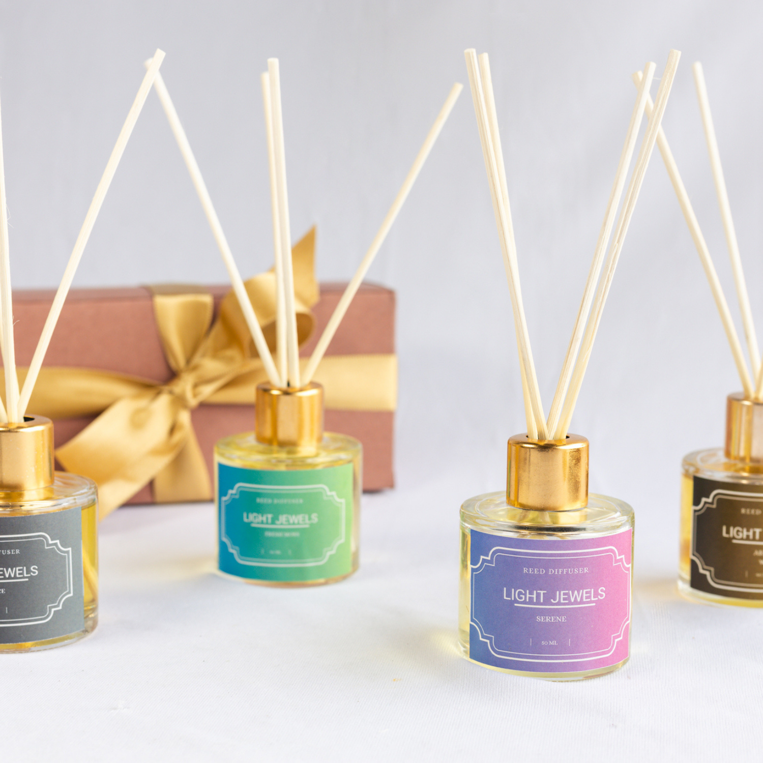 Elevate your home fragrance with our reed diffusers. Enjoy flameless everlasting fragrance throws. We have thoughtfully curated 4 fragrance blends for your home: