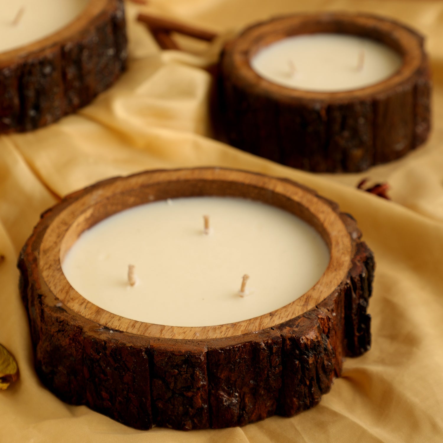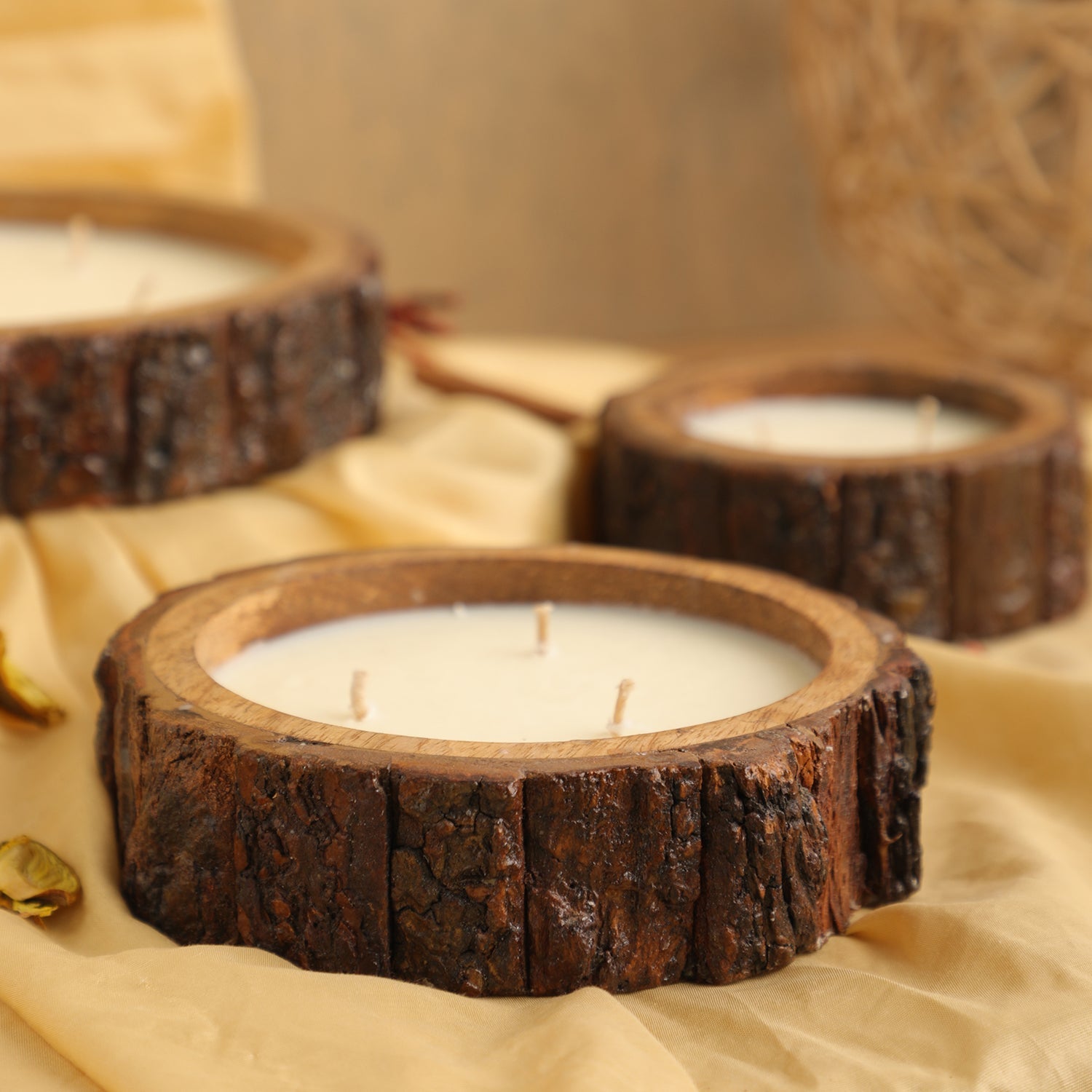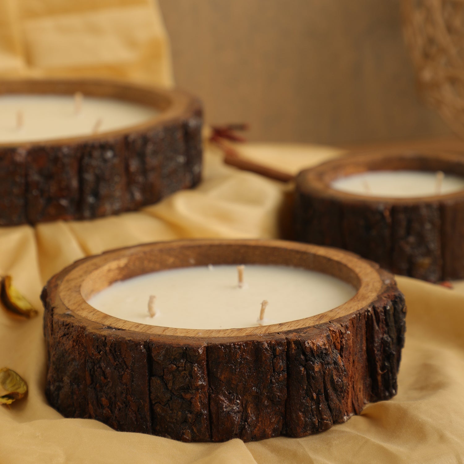 Traverse to the realm of nostalgia with this set of Mango wood rings filled with soy- coconut wax and adorned with the scent of lily of the valley. A perfect gift as a rustic yet redefined decor addition.