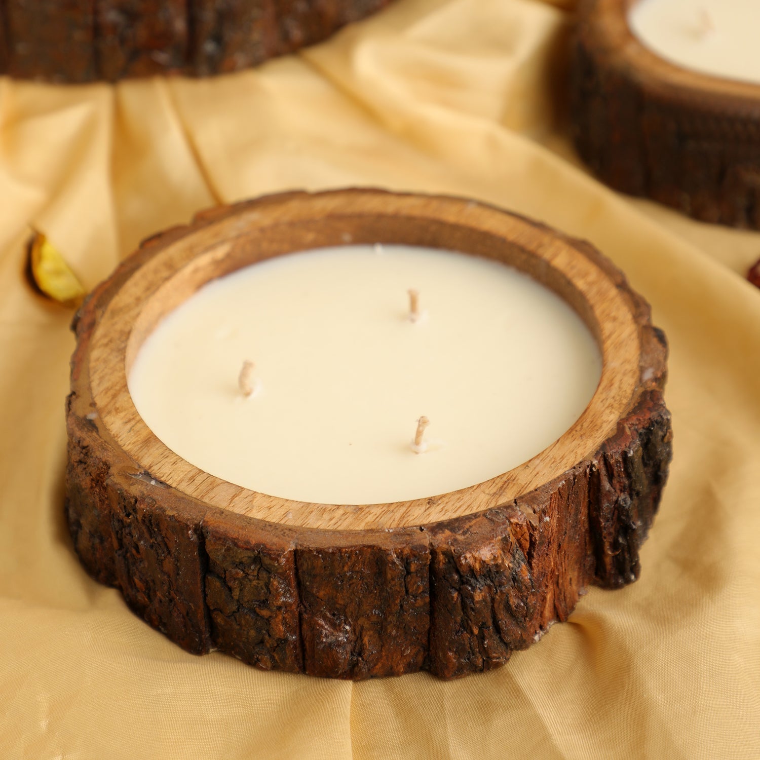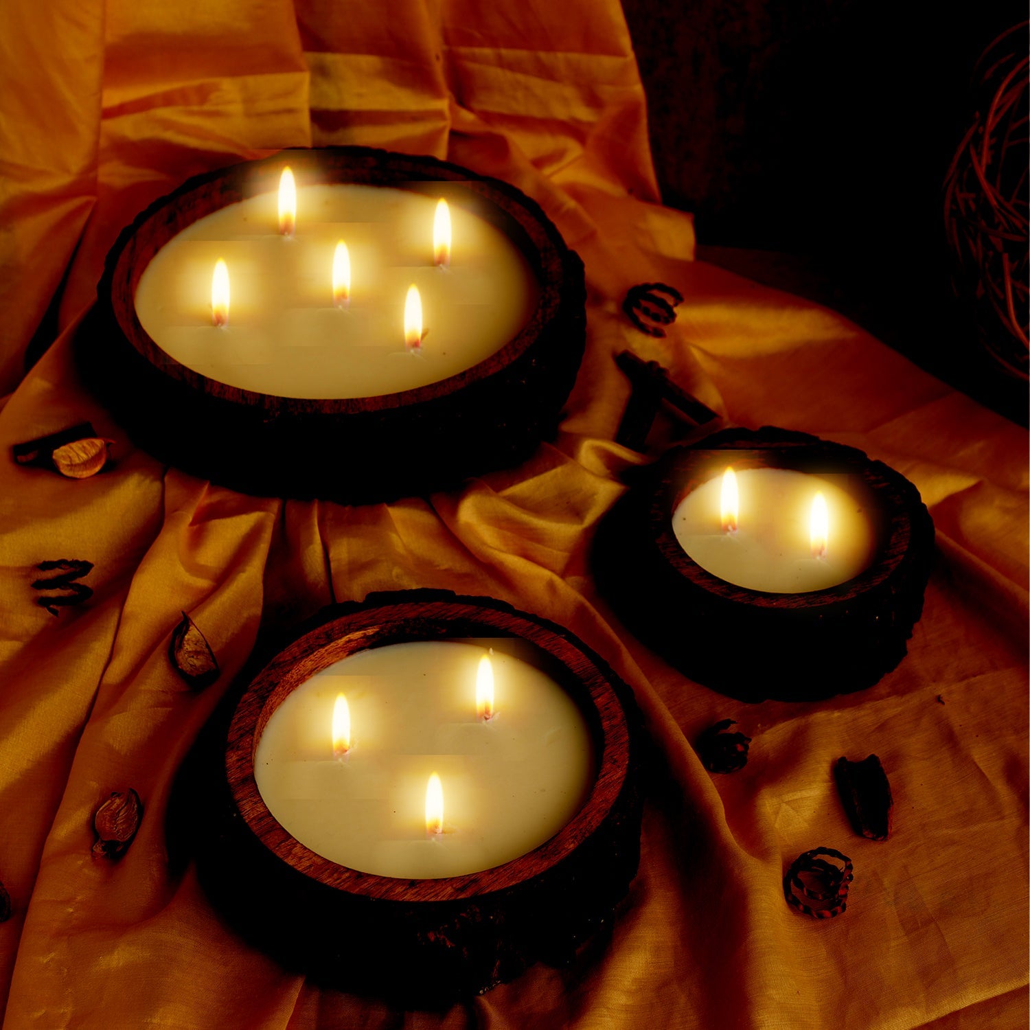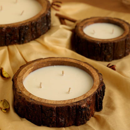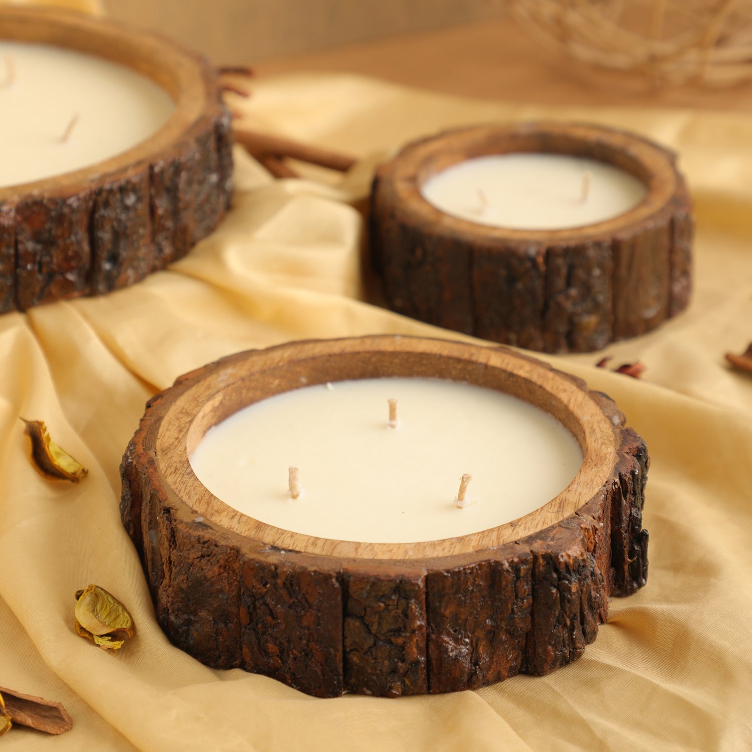 Traverse to the realm of nostalgia with this set of Mango wood rings filled with soy- coconut wax and adorned with the scent of lily of the valley. A perfect gift as a rustic yet redefined decor addition.