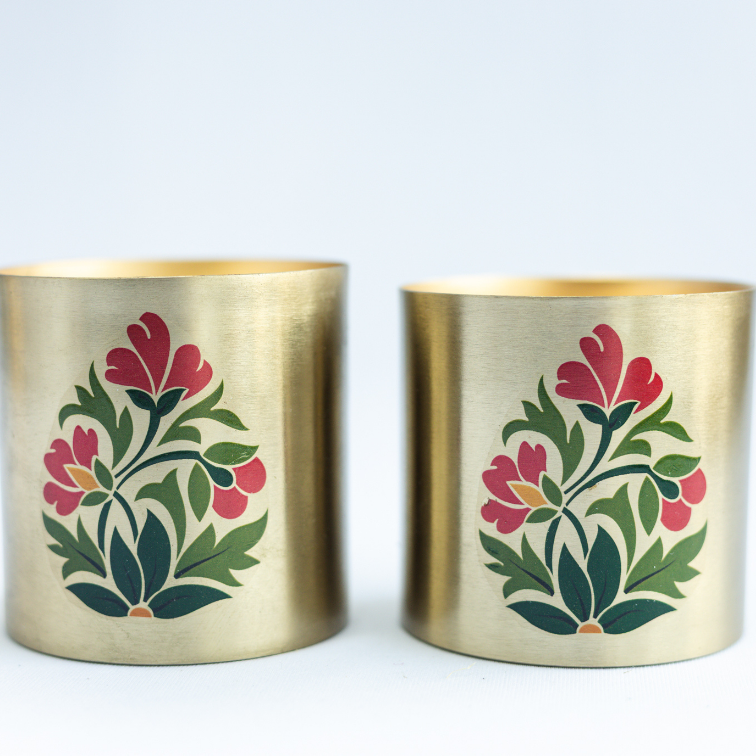 Set of 2 Floral Motif Metallic Jar Candles in Bakul & Parijat Fragrance
