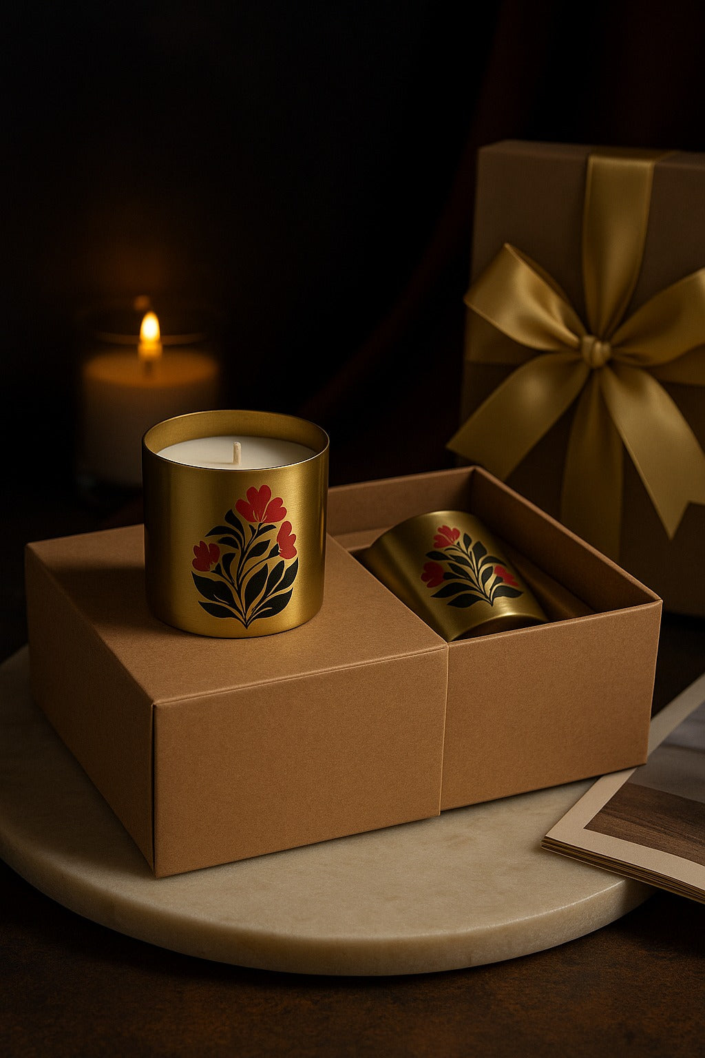 The Scent of Parijat & Bakul ,2 aromatic and traditional Indian flowers has been captured in these soy wax candles. The floral motifs on the jar,make them a beautiful addition to home decor. This exquisite gift will be cherished for a long time.