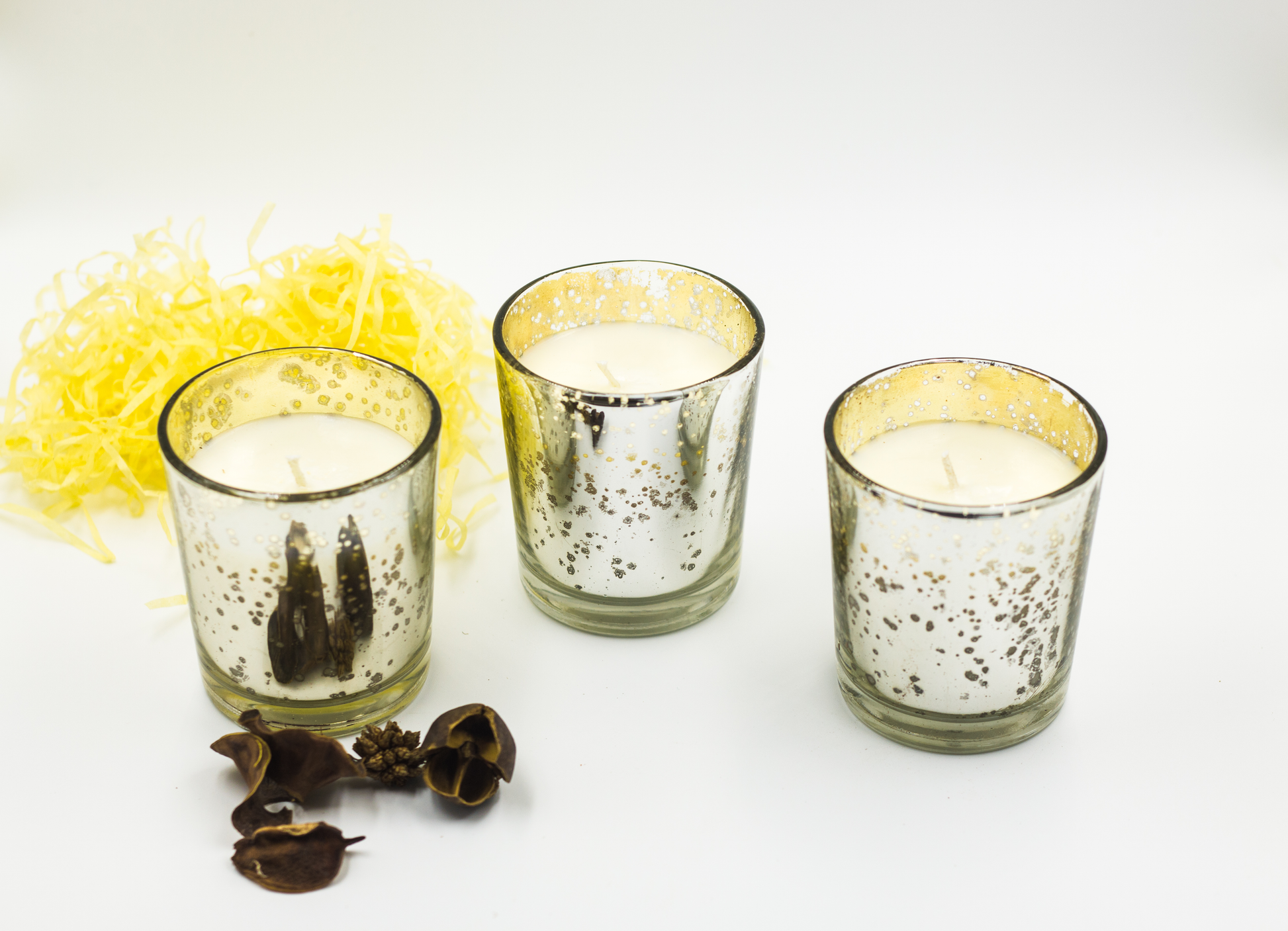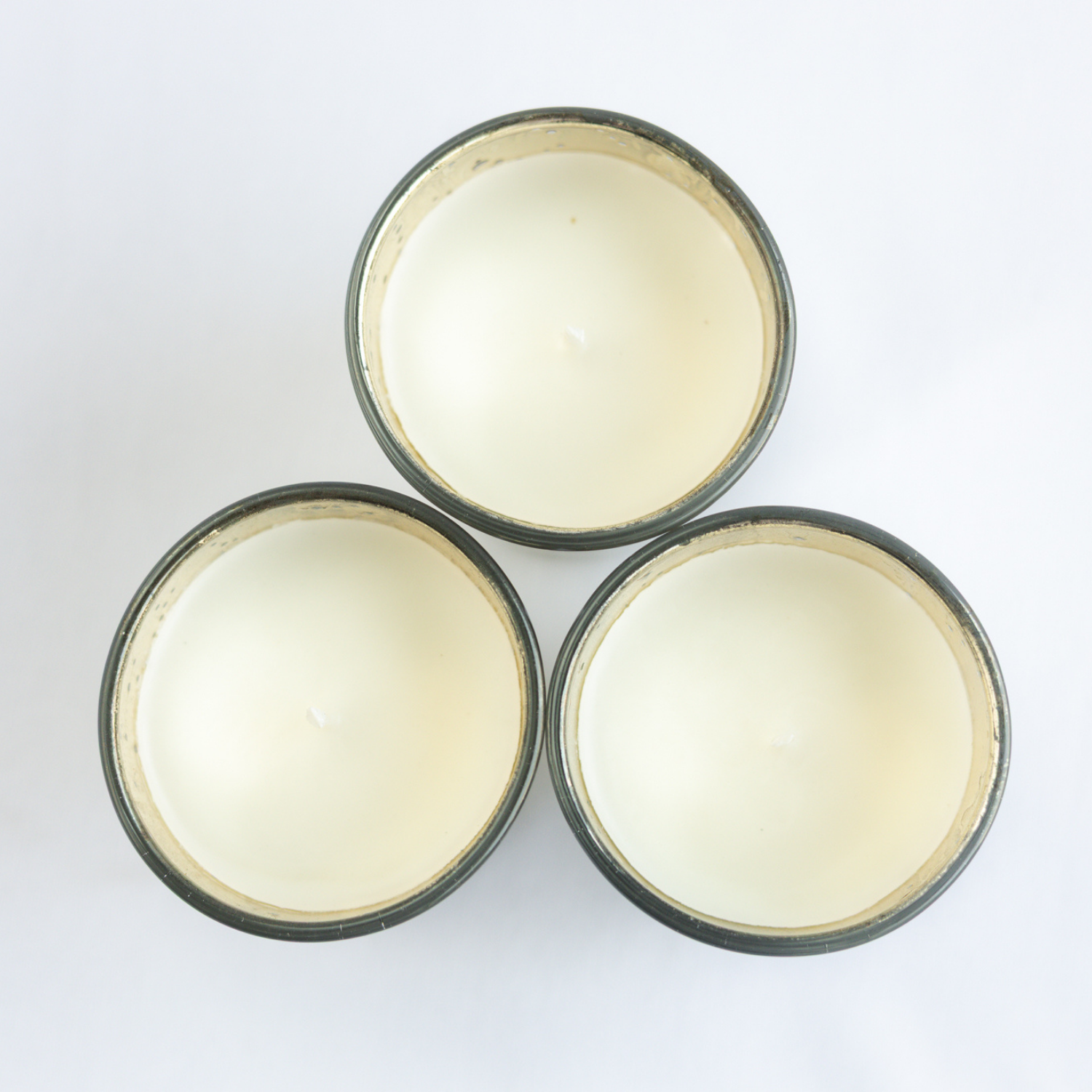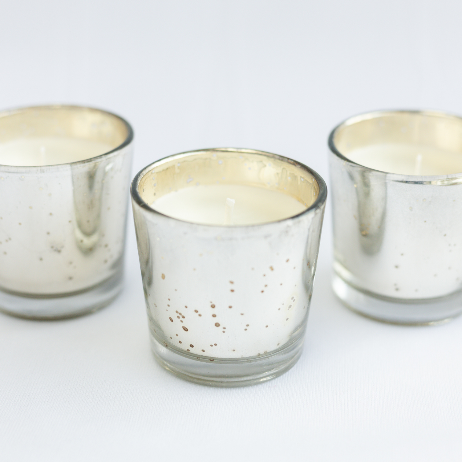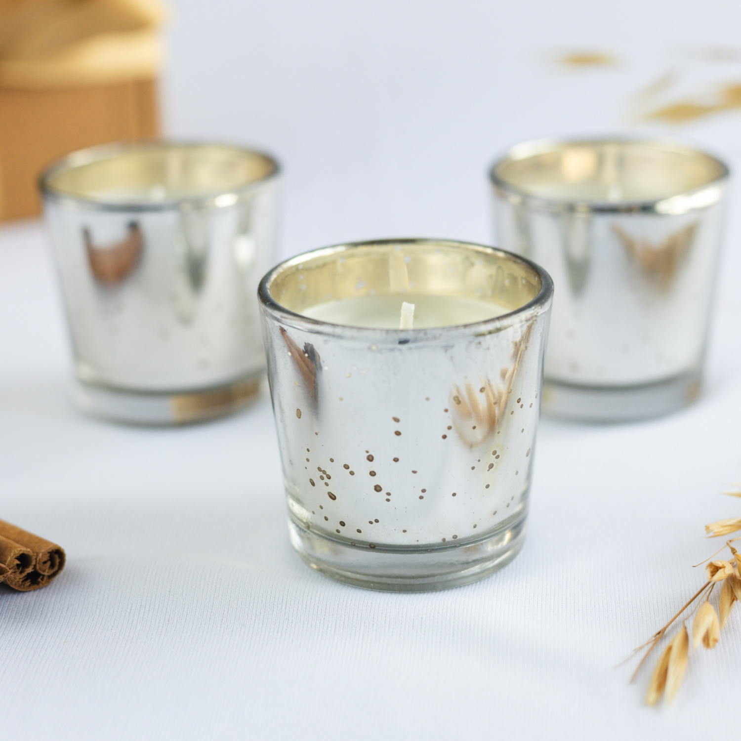 Set of 3 Mercury Glass Votives in Soy wax & Oud Exotica Fragrance