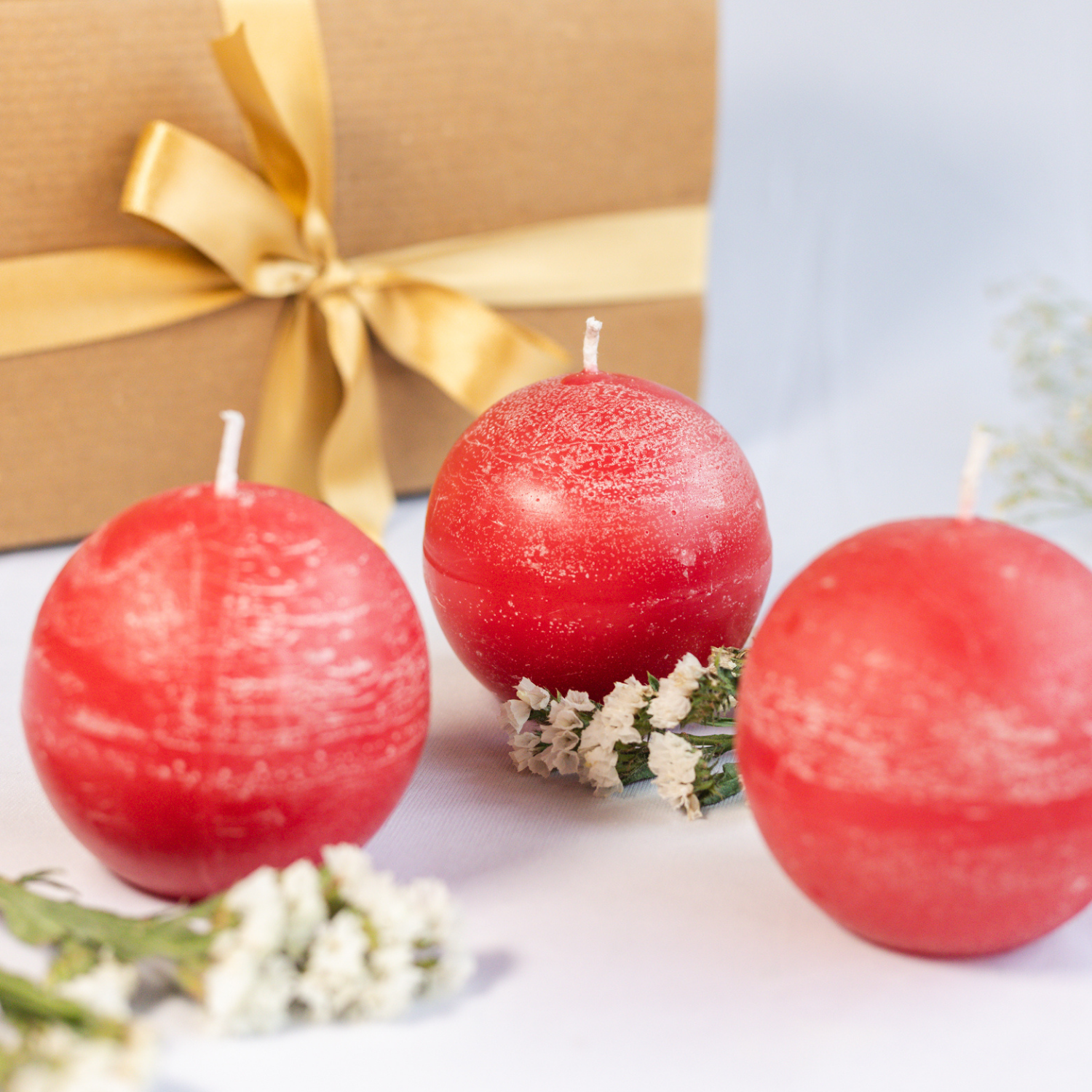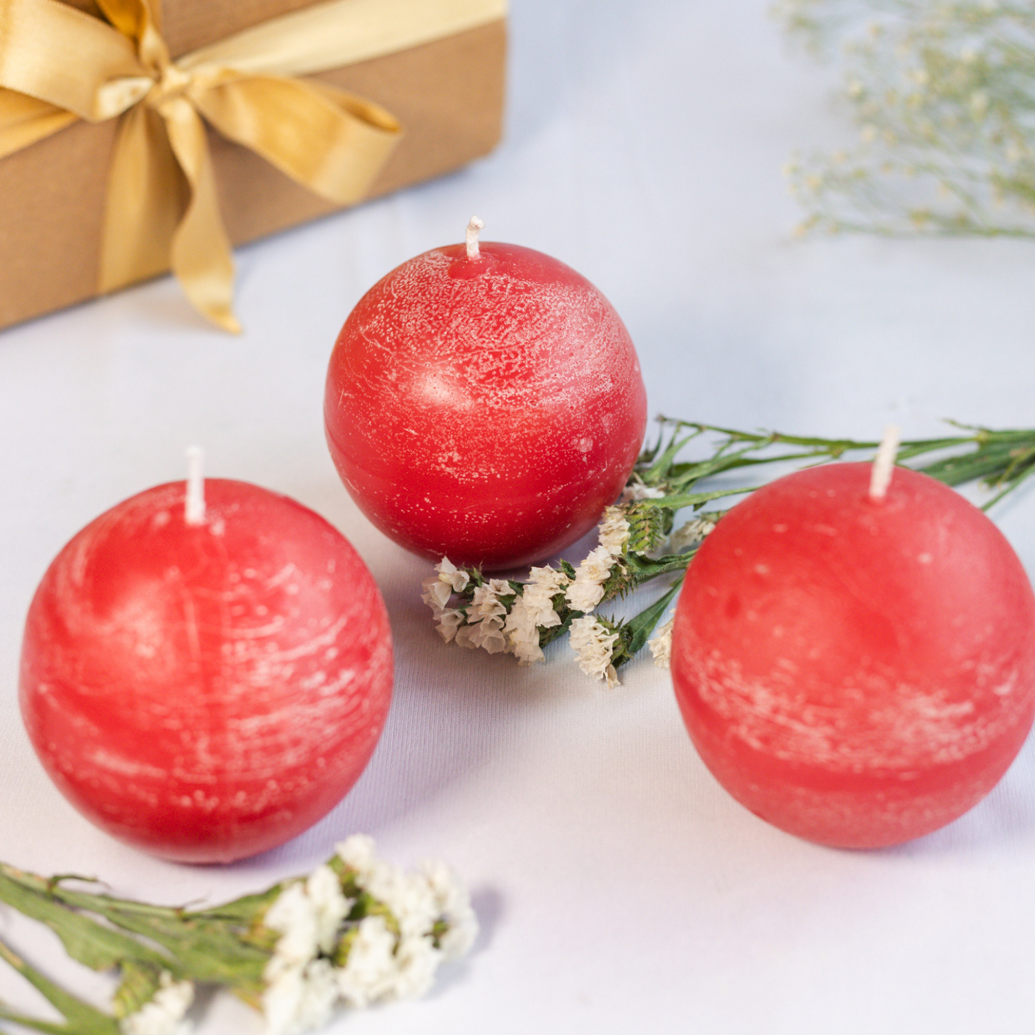 Set of 3 Rustic Finish Red Round Ball Candles
