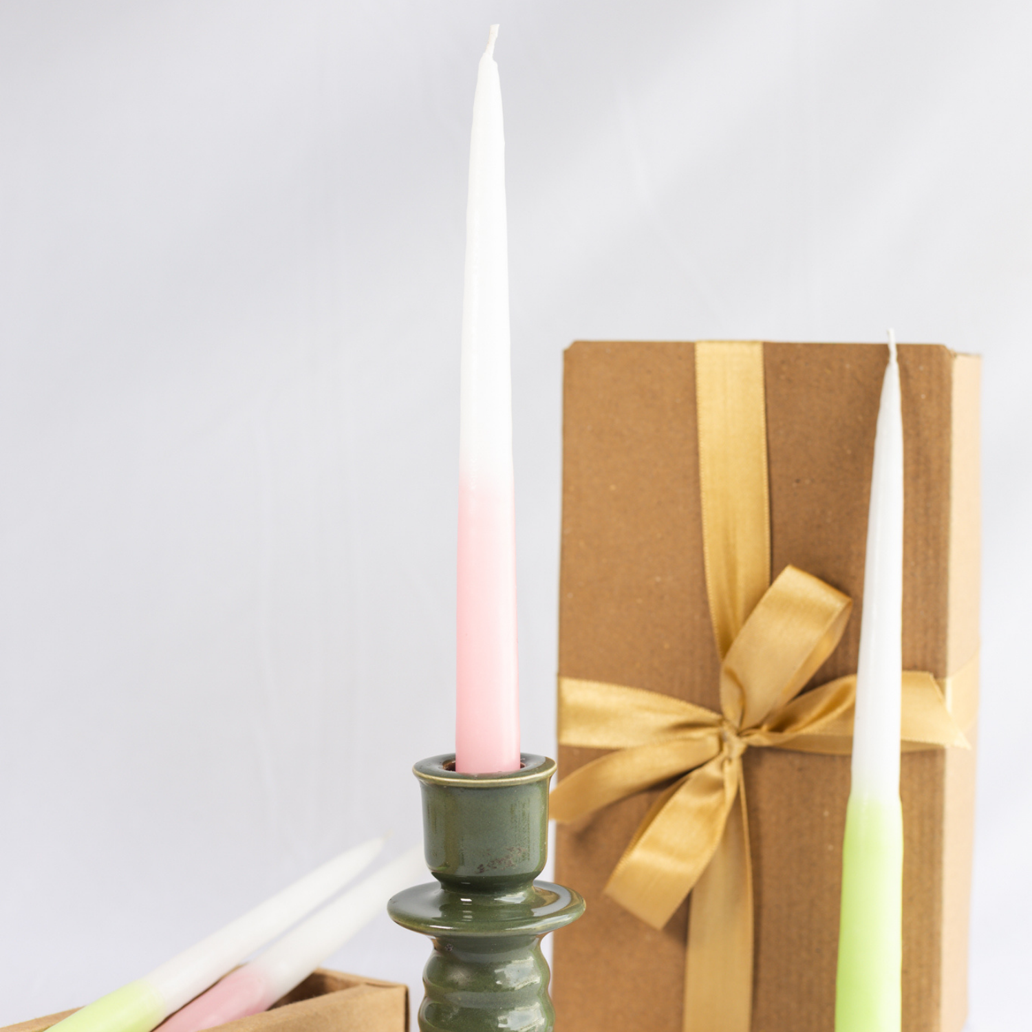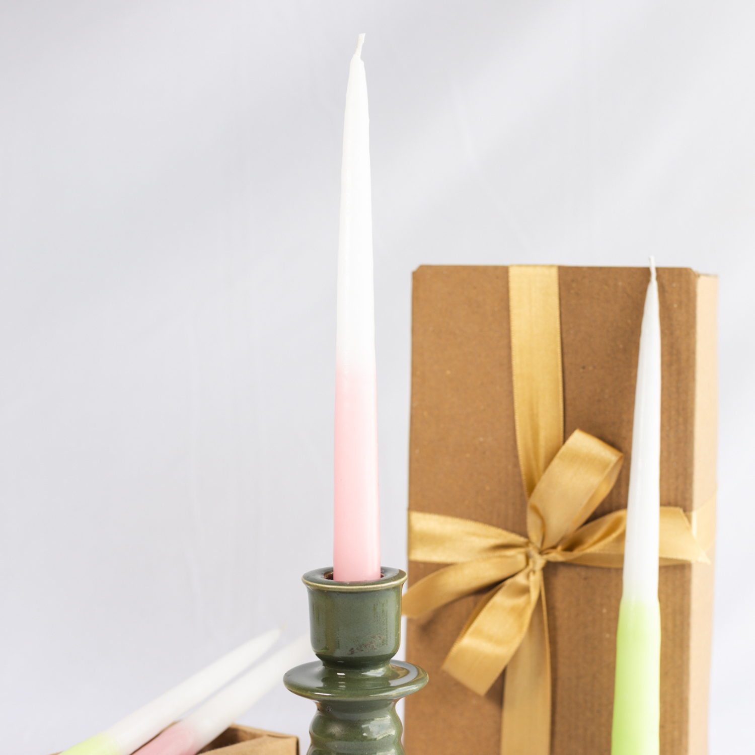 Set of 4 Hand Dipped Tapers in Pastel Pink & Green