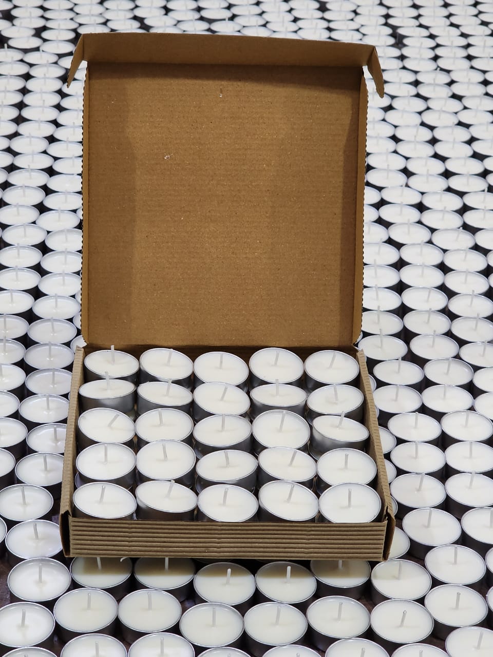 Our hand poured t lites in soy and coconut wax blend are unscented and have a smooth and clean burning. Each of the 50 t lights burn upto 4 hours and help create warm and inviting moments with your loved ones.