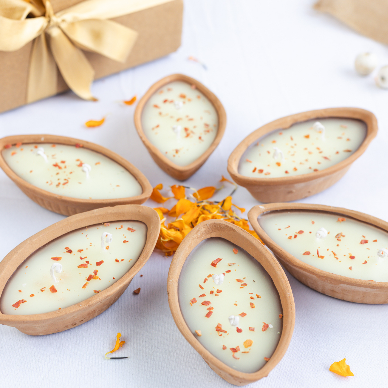 Set of 6 Boat Shape Mitti Diya in Sandal Fragrance
