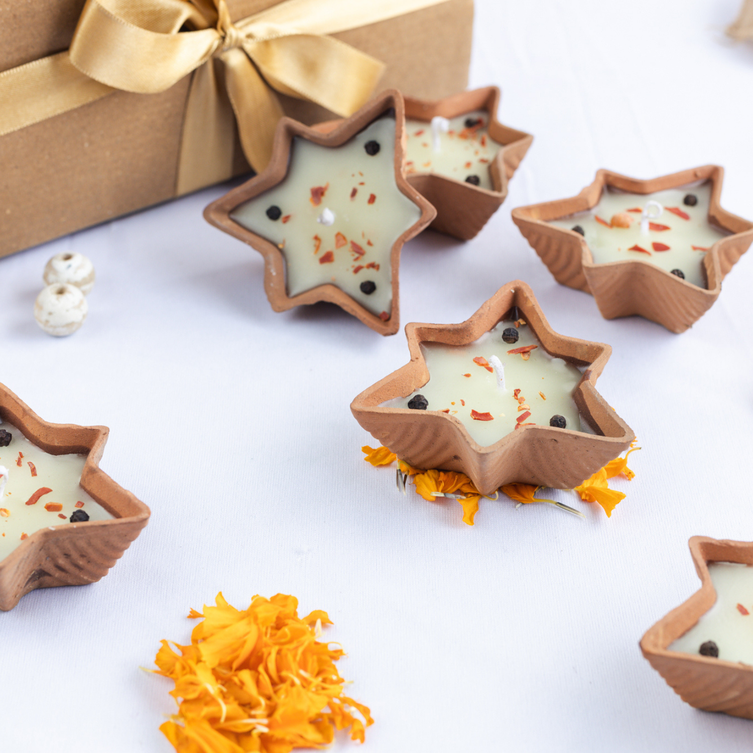Set of 6 Star Diyas in kesar Chandan Fragrance