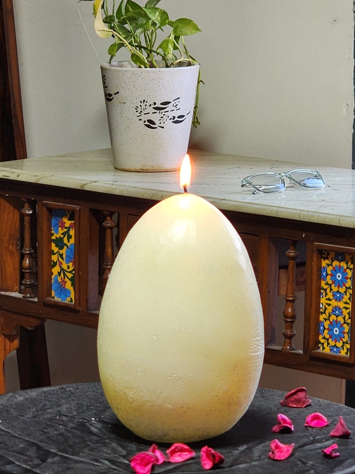 Rustic yet refined, the Ivory Egg Candle is a statement piece for your living spaces. Its textured surface and warm ivory hue bring an understated elegance that effortlessly blends with any decor style.