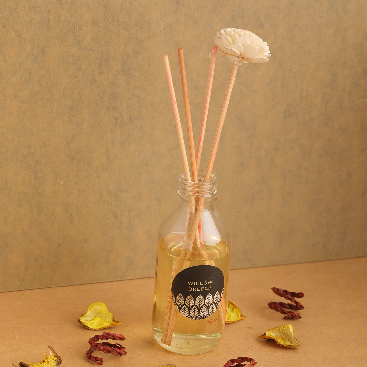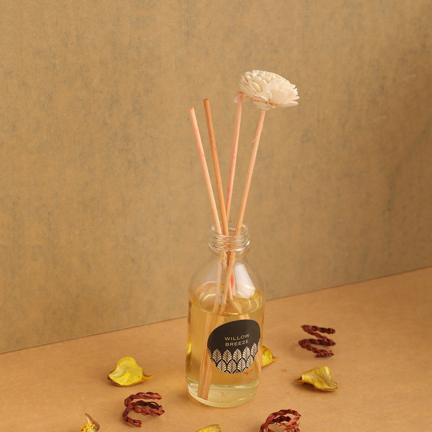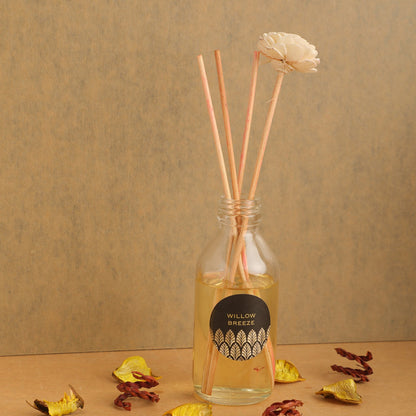Let the sweet and lush aroma of Green Willows drift through your home with our Willow Breeze Reed Diffuser. Made with alcohol-free oils, this diffuser provides a long-lasting, fragrant experience that fills your space with the essence of nature, effortlessly enhancing your home ambiance.